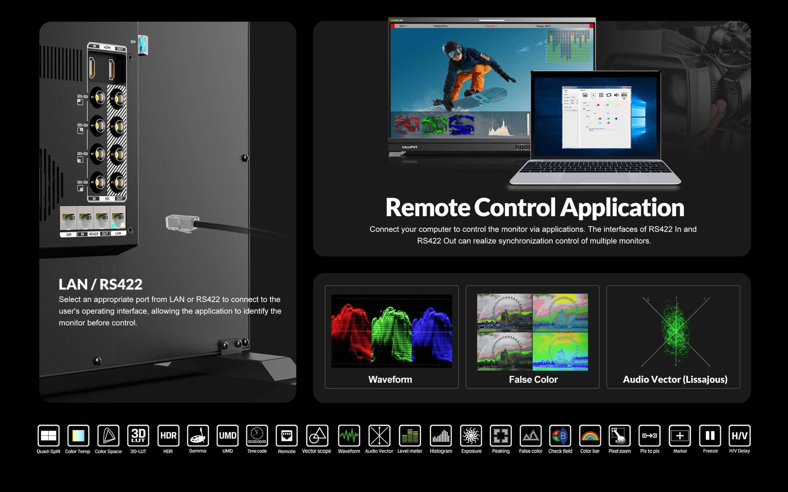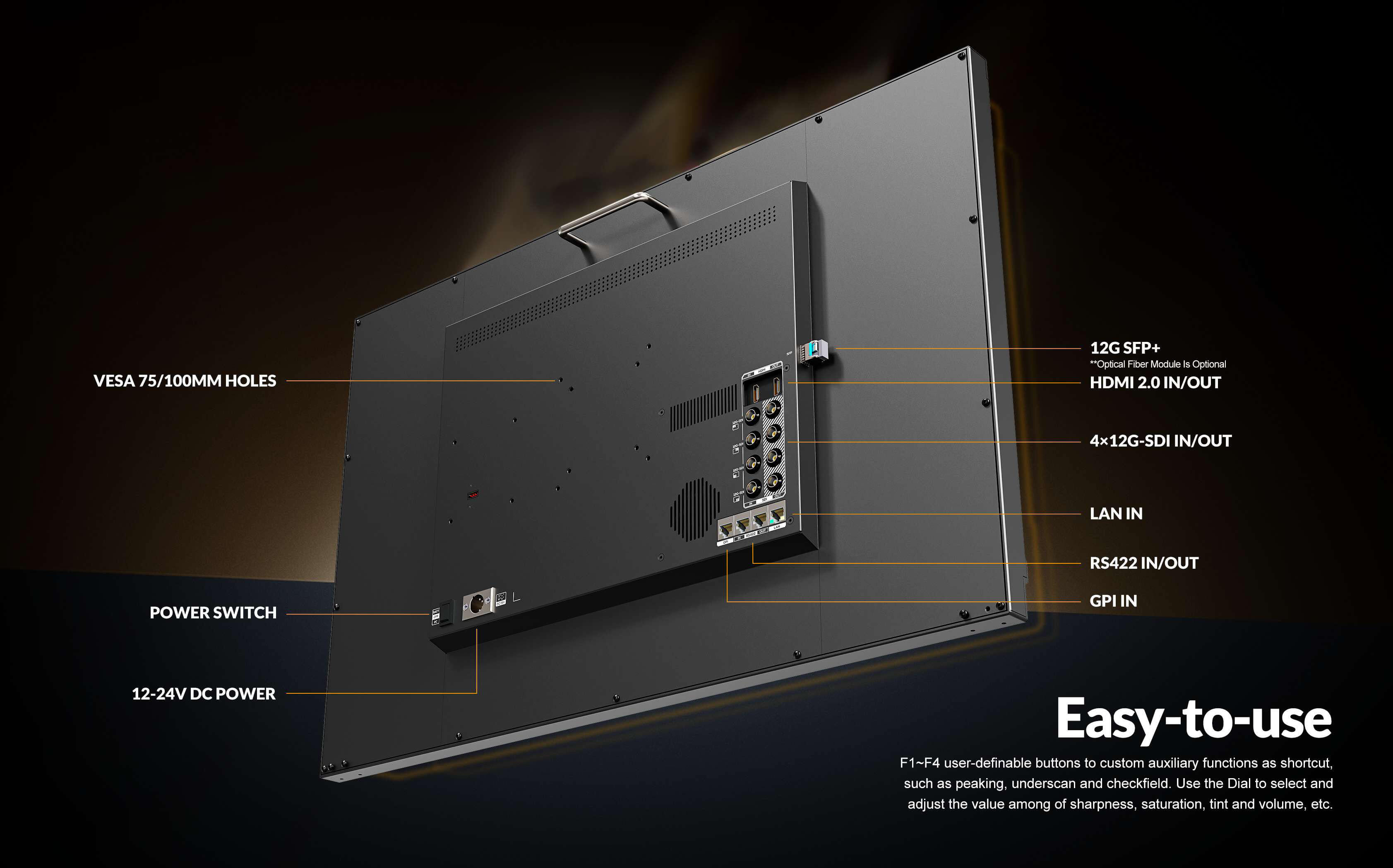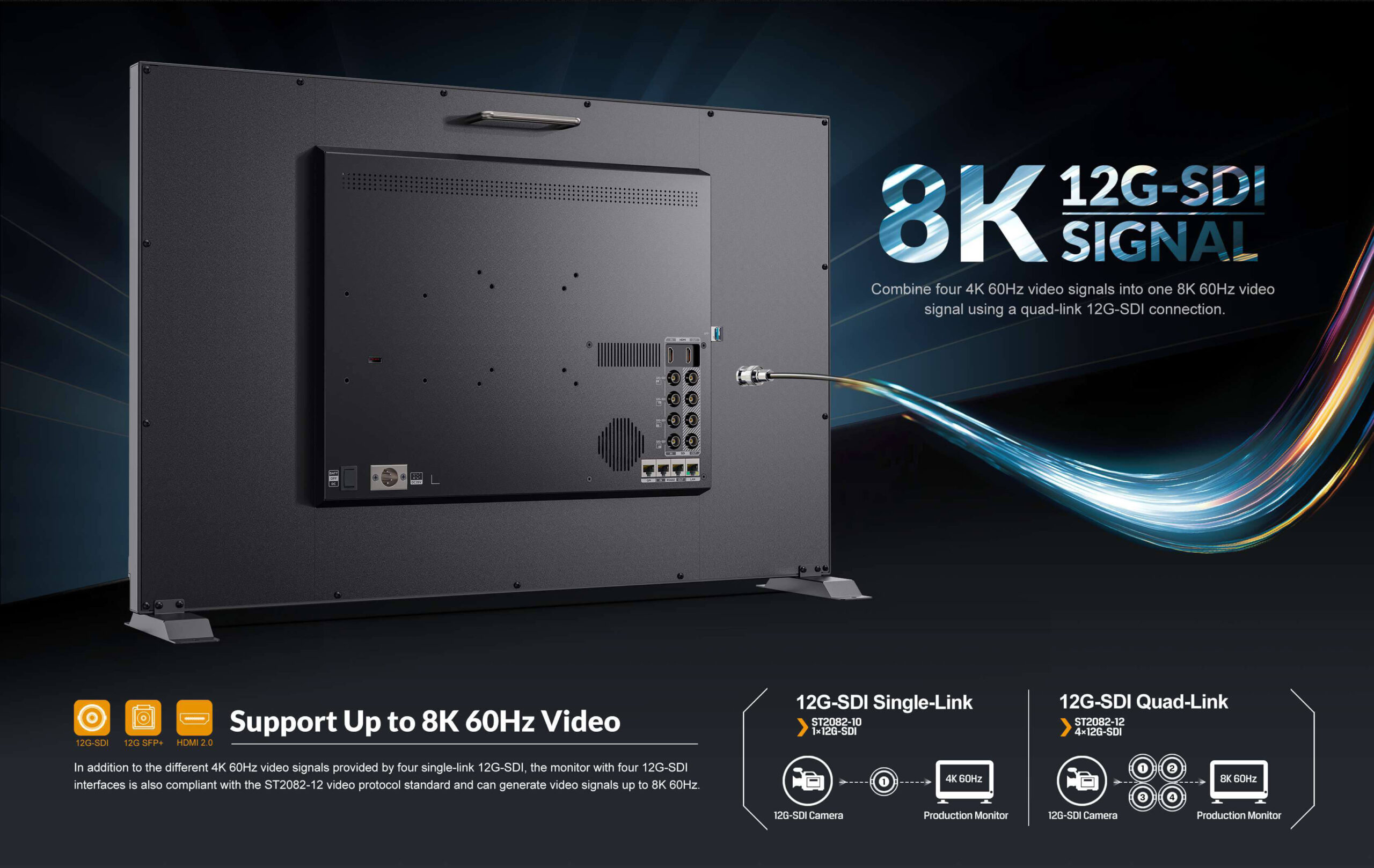 Fits into your 8K production video workflows with 4x 12G-SDI video inputs | 31.5" native 4K display with 350 nits brightness | Quad Split Multi-View and Remote Control