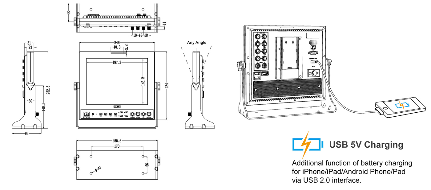 969A/S  matches with world-famous FHD camera & camcorder brands, to assist cameraman in better photography experience for variety of applications, i.e. filming on site, broadcast live action, making movies and post-production, etc. It features 9.7″ 4:3 LCD panel with 1024×768 resolution, 600:1 contrast, 178° wide viewing angles, 400cd/m²  brightness, which offers outstanding viewing experience.